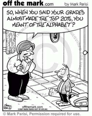 A schoolboy says he made the top 20% grade, but he meant the top 20% of the alphabet.