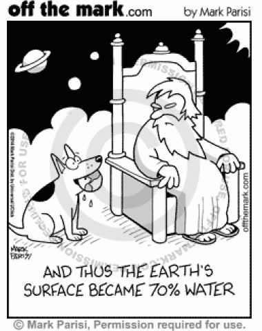 God's dog drools all over the Earth, making its surface 70% water.