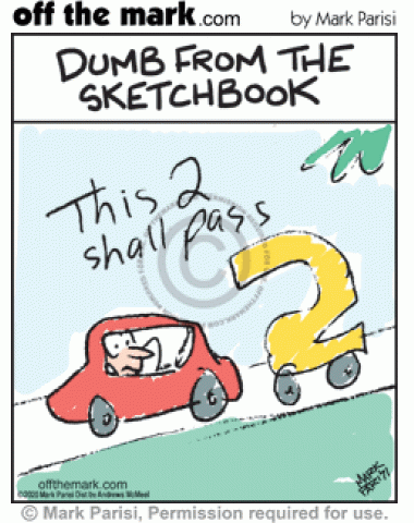 This 2 Shall Pass Dumb Pun SketchbookCartoon Cartoonist’s rough draft sketch of number two car passing driver.