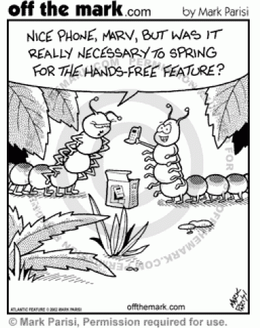 Centipede Hands Free Phone A centipede gets a hands free phone for no apparent reason.