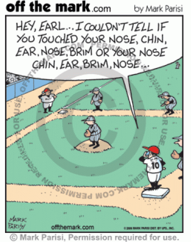 Baseball Player Cell Phone Baseball player on cell phone is confused by what signals the coach is using.