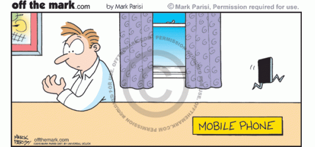 Mobile Phone Man is surprised that mobile phone is actually mobile and can run away.
