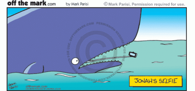 Jonah's Selfie Jonah uses whale's tongue to take a selfie from instead whale's mouth.