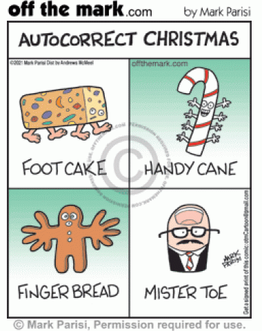 Autocorrect Christmas Foot Cake, Handy Cane, Finger Bread & Mister Toe Spelling Fixes