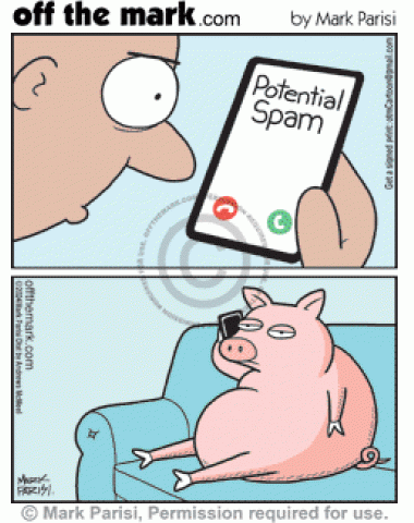 Pig Cellphone Call Potential Spam Warning Man’s Iphone warns calling pig’s contact is potentially spam scam.