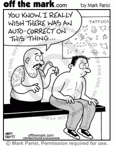 Tattoo Autocorrect A tattoo artist tells a client he wishes his needles had autocorrect.